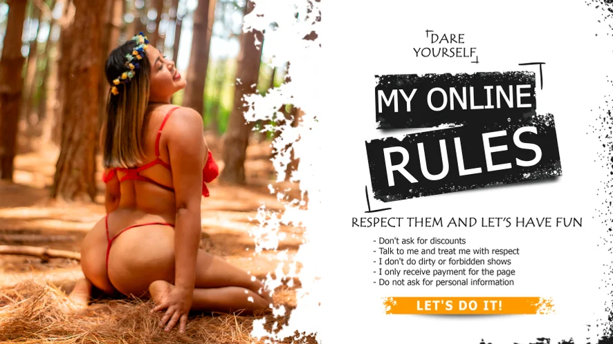 MY RULES RESPECT THEM AND LET'S HAVE FUN TOGETHER - Don't ask for discounts - Talk to me and treat me with respect - I don't do dirty or forbidden shows - I only receive payment for the page - Do not ask for personal information